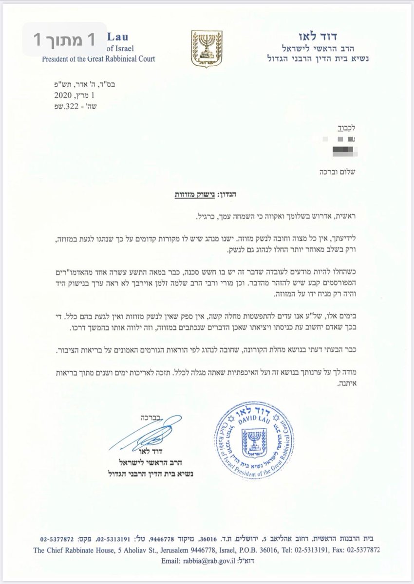 בדקתי עם דובר הרבנות הראשית. המכתב המופץ הוא אותנטי ואכן נכתב על ידי הרב הראשי.המקור: