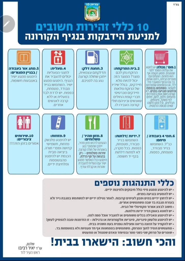 עיריית לוד הכינה מודעה המסבירה איך להימנע מהידבקות בנגיף הקורונה
