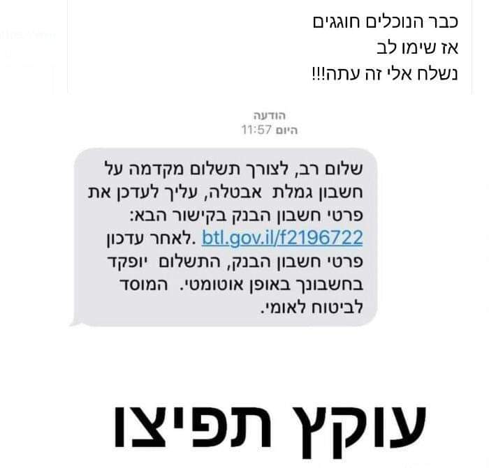 האם יש אימות מביטוח לאומי שהם אכן שולחים את ההודעה?