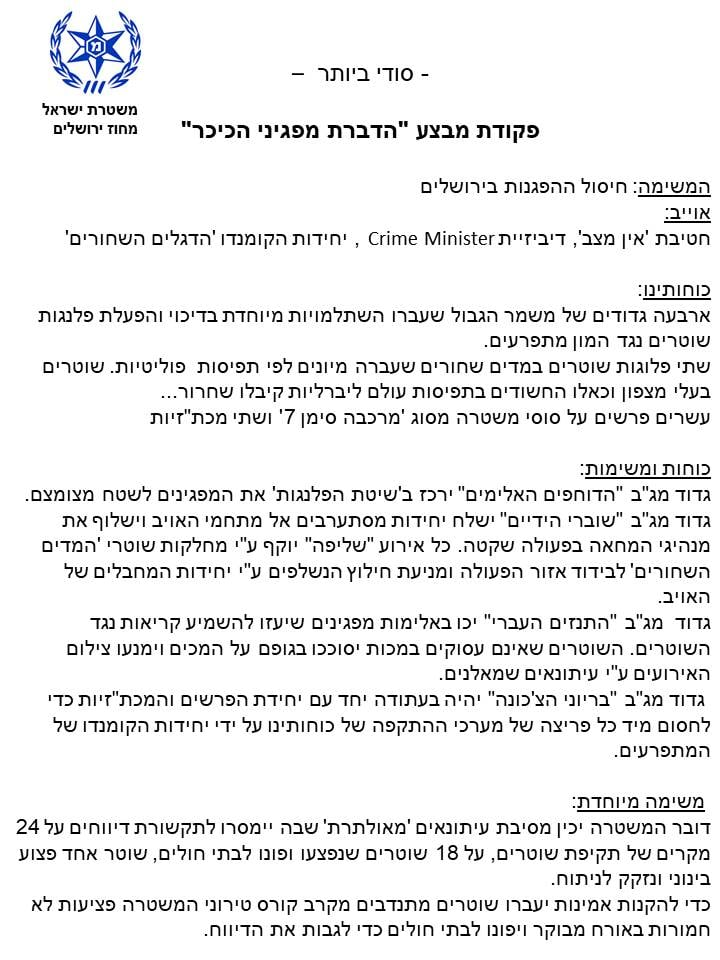 פקודת מבצע "הדברת מפגיני הכיכר"המשימה: חיסול ההפגנות בירושלים