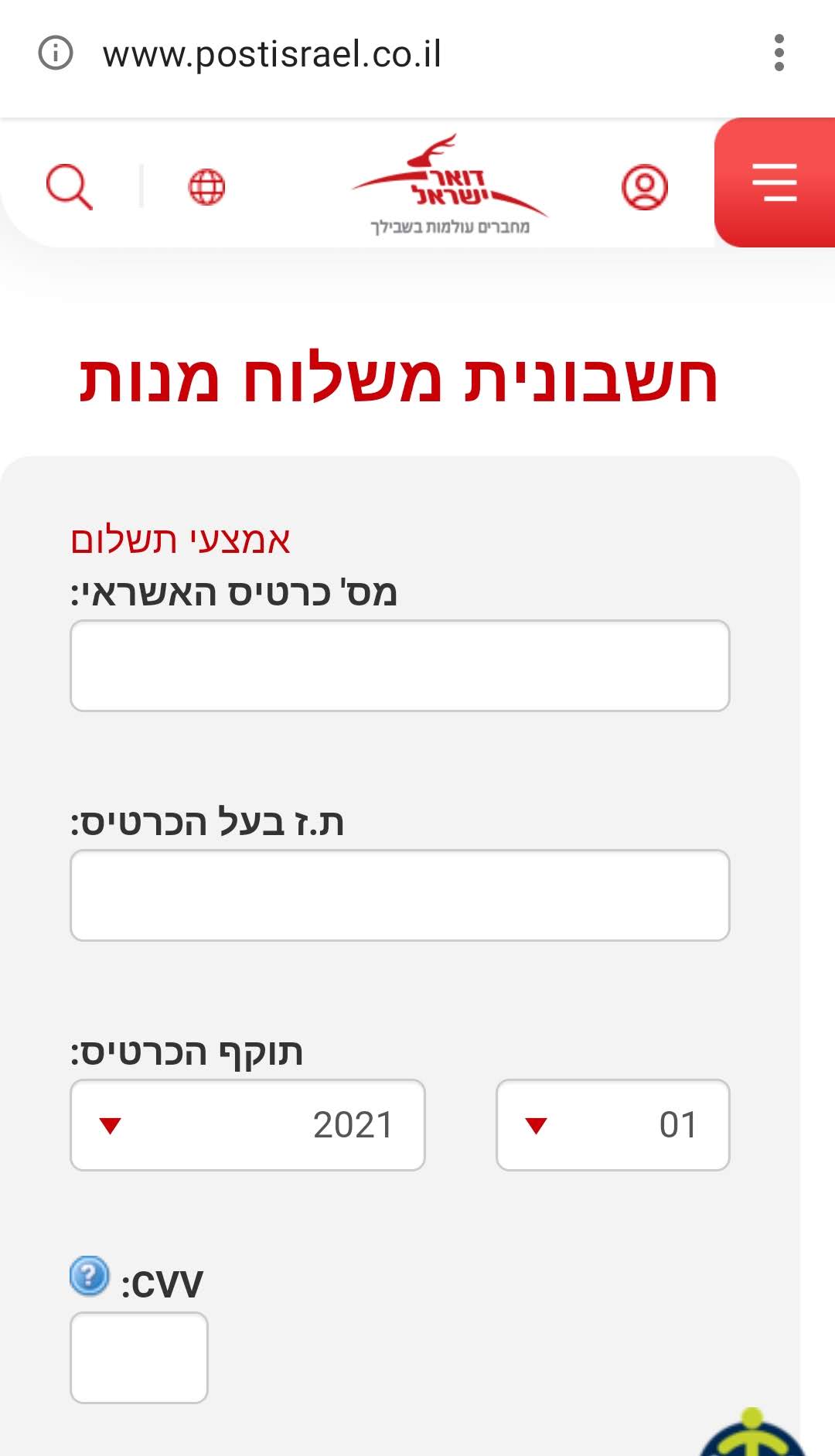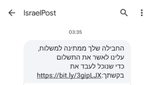 המפנה לאתר postisrael.co.il, אל תיכנסו אליו ואל תתנו את פרטי האשראי שלכם. זהו אתר תרמית המתחזה לאתר הרשמי של דואר ישראל.