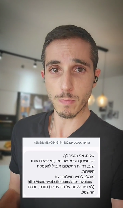 מסתובב סרטון של עו"ד אלעד שאול המזהיר מפני תרמית חשבון חשמל שמגיעה ב-סמס
