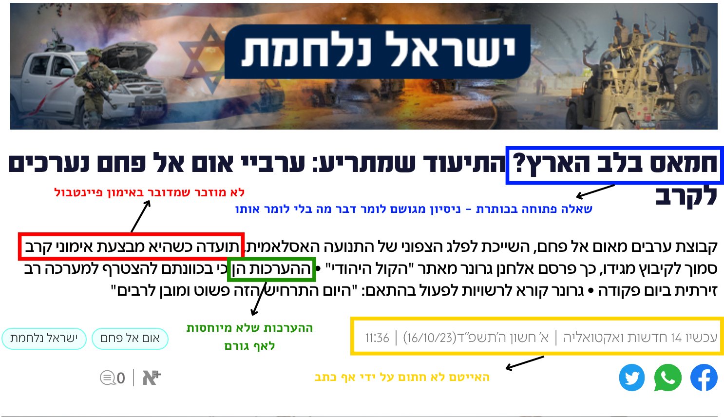 אז מה היה לנו? מצד אחד אייטם מטריד ודרמטי שמזהיר מהתארגנות צבאית של תומכי חמאס בתוך הארץ. מצד שני: אפס מידע ואפס הוכחות. רק הרבה מאוד הפחדות. או בקצרה: ציוץ שהפך לכתבה בלי בדיקה.