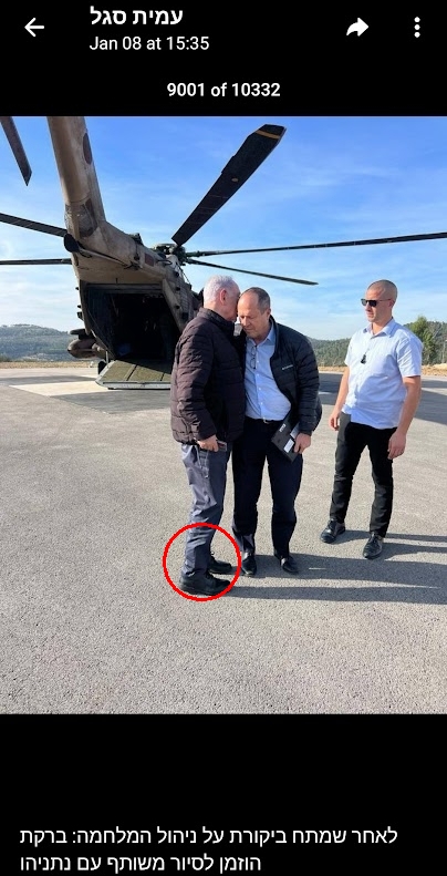 ב 8 בינואר 2024 פרסם עמית סגל בערוץ הטלגרם שלו צילום של נתניהו כאשר בתוך המכנס שלו רואים חפץ מלבני. ישנן השערות שמדובר במכשיר רפואי שמוחבא שם. הסימון באדום נעשה על ידי. לא ידוע לי מי הצלם.