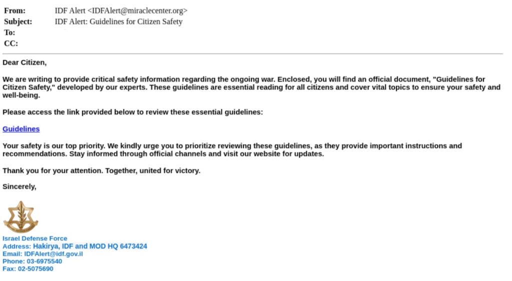 שימו לב,יש כעת קמפיין פישינג רחב של קבוצת התקיפה האיראנית MuddyWater עם נסיון השתלטות על מחשבים באמצעות מייל מתחזה לצה"ל.