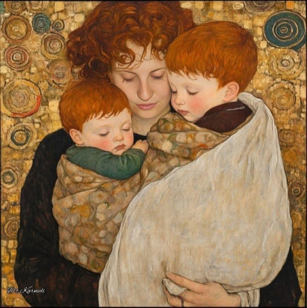 זהו לא ציור של הצייר גוסטב קלימט אלא יצירה של דגנית צברי קרניאלי שכתבה : עוד מעט עוד קצת אתם כאן יחד... I pray with all my heart... that soon, just a little while longer, you will all be here together". כוונתה לשירי ביבס וילדיה אריאל וכפיר שנחטפו מקיבוץ ניר-עוז ונרצחו בעזה בעודם בשבי החמאס.המקור: